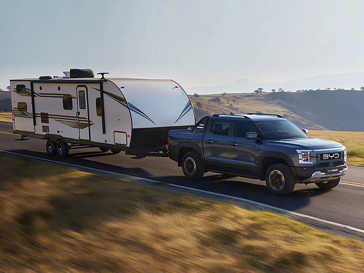تعمل بمحرك بنزين توربو سعة 1.5 لتر بقوة 170 كيلوواط ، إلى جانب محركين كهربائيين على المحورين لتشكيل نظام دفع رباعي كهربائي بقوة إجمالية تصل إلى 320 كيلوواط . وتُعتبر أول بيك أب في العالم تستخدم تصميم هجيني طولي (Longitudinal Range-Extender Hybrid Layout).