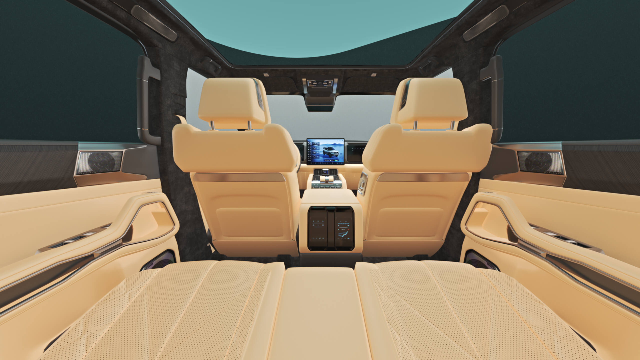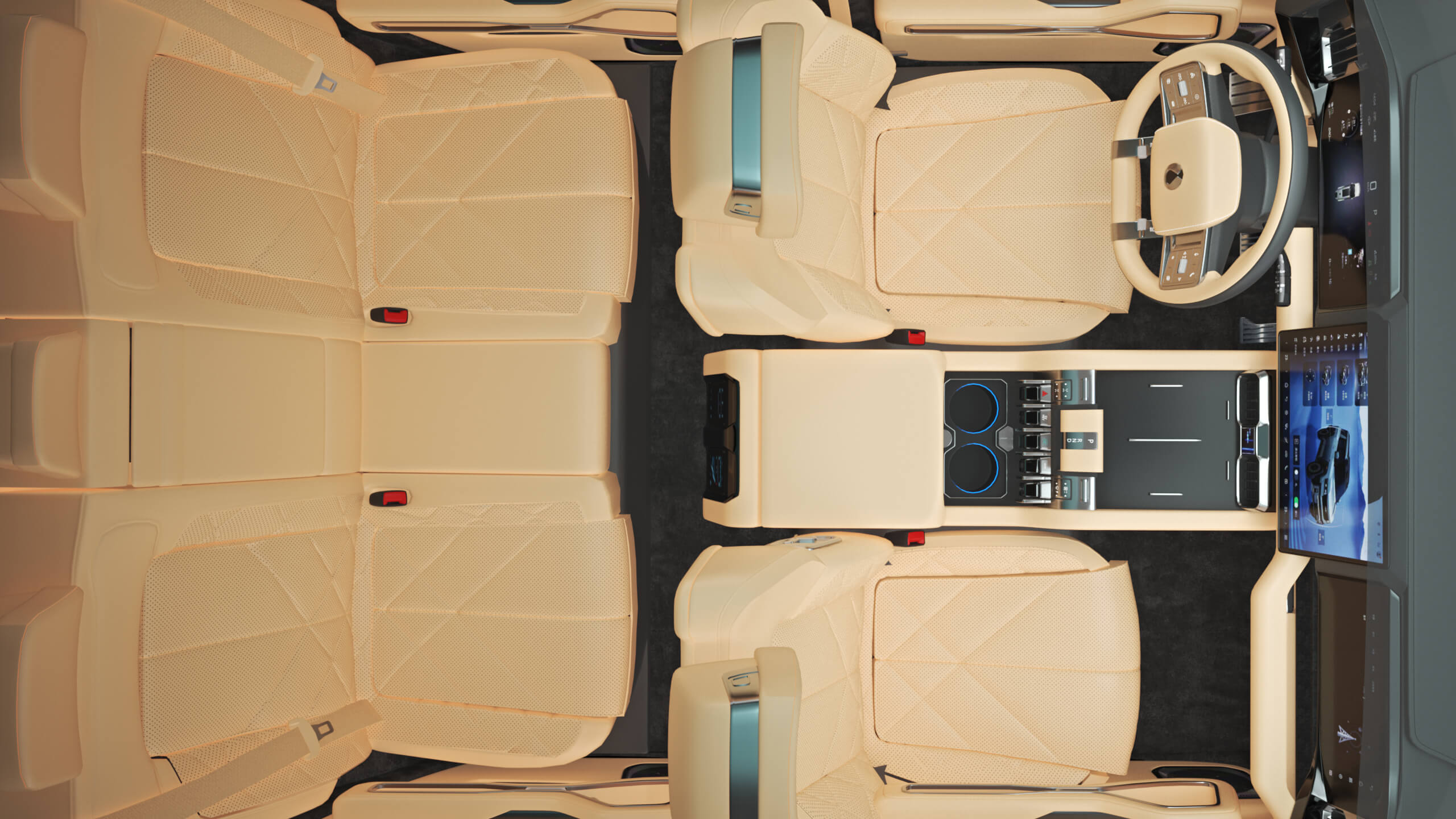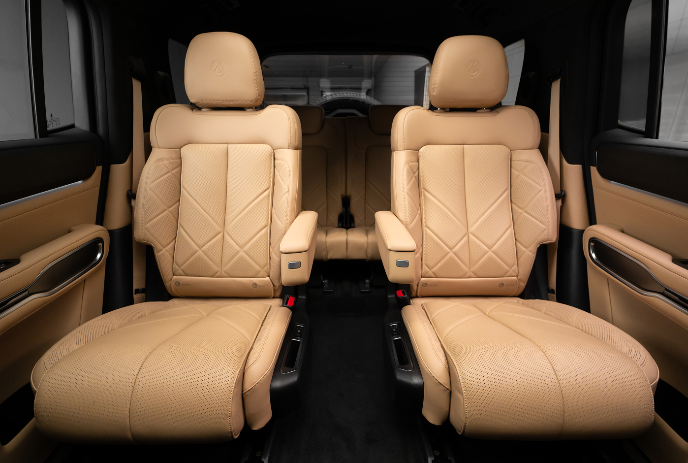 مقاعد السائق والراكب والصف الثاني مع وظيفة التدليك |