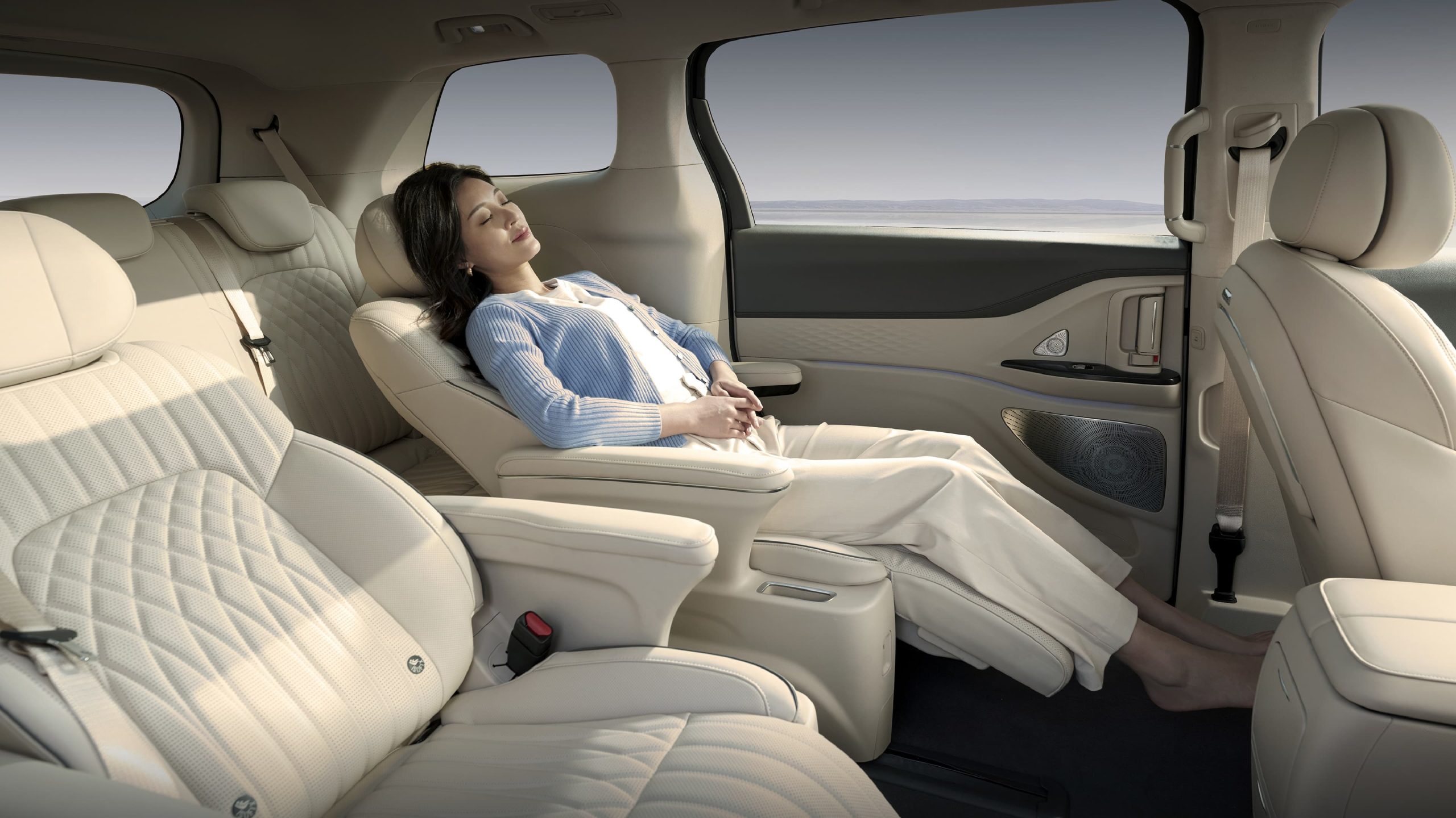 مقعد السائق والراكب والصف الخلفي |